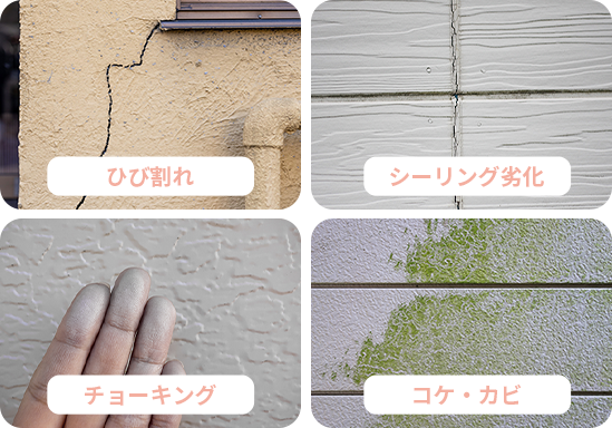 一般的には、新築から約15年、もしくは前回の塗装から10年ほどが塗替えの目安とされています。とくに、ひび割れ・塗膜のはがれなどが見られる場合は要注意。大規模な修繕が必要になる前に、日ごろから状態をチェックしておくことが大切です。