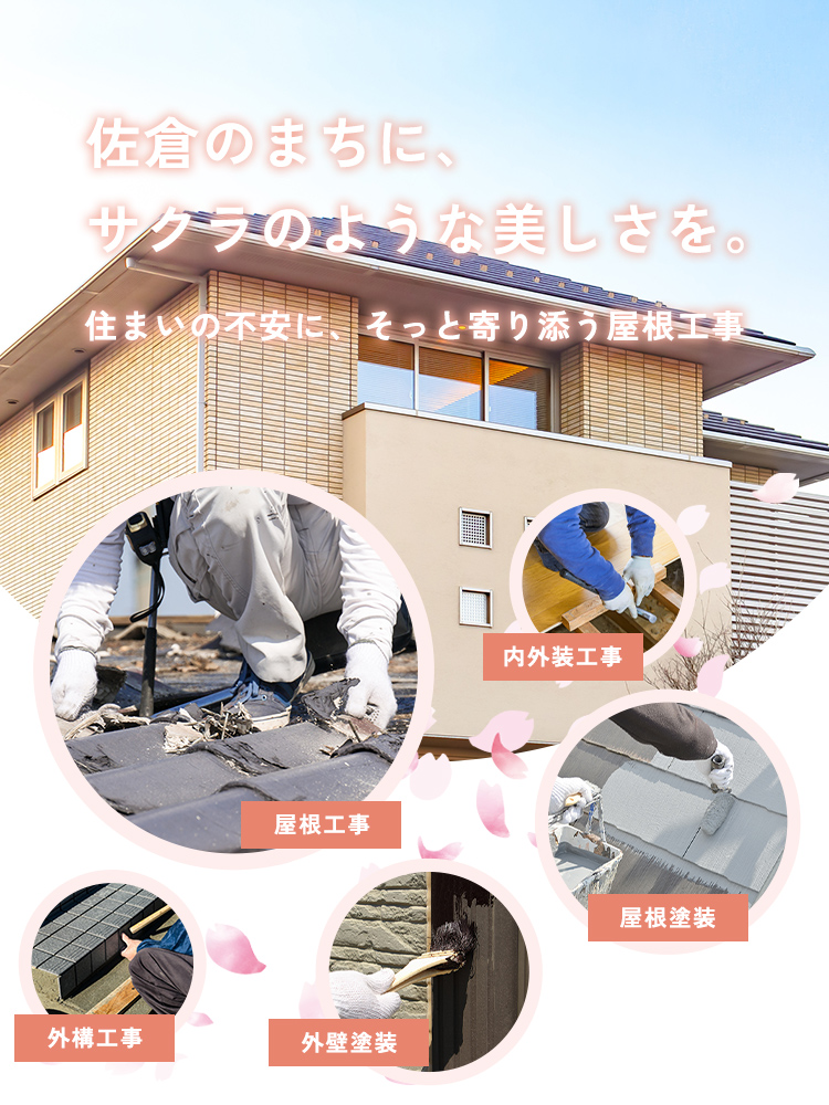 大切な住まいを長く快適に保つために、定期的なメンテナンスは欠かせません。とくに屋根や外壁は、雨風や紫外線にさらされることで、少しずつ劣化が進んでいきます。サクラ美建では、見た目の変化だけでなく、普段は見えない下地の状態から丁寧に点検を実施。適切なタイミングで、ご希望に沿った工事をご提案いたします。
